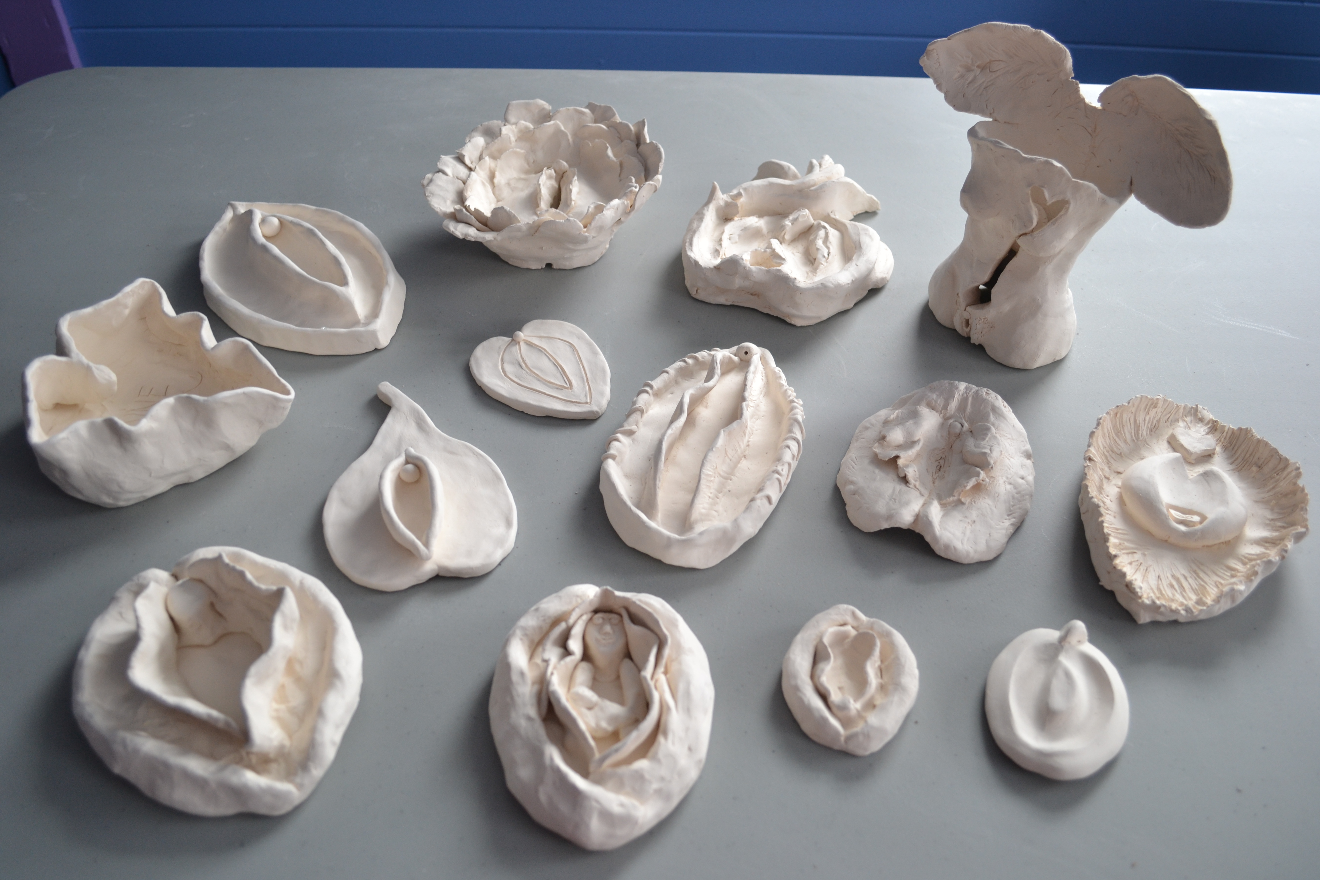 A new word was invented by Kristen when she RSVP’d to my “clay class” — Clabia. Wow. Melding two things I love: clay and labia. I’m copywriting the word Claybia for the workshops I am holding now. They’re not really classes; I don’t teach you how to make a labia – I create a safe space to explore and sculpt. I held the first one last month: I shared my journey that began when I heard someone say that ‘when the lower heart is abused, the upper heart shuts down.” I was in a clay class at the time, and began sculpting labia in clay to heal my own lower heart abuse. It’s been healing, liberating, and now is a source of joy. I also shared a meditation on kindness that left everyone feeling … we all shared our one word, and they were all different. Mine was yummy.